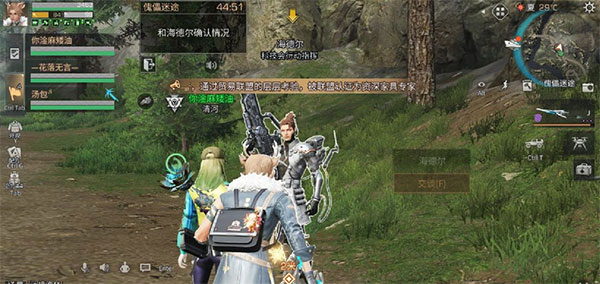 2:组成四人小队进入游戏。开局时,选择增加移动速度的副武器,如铁丝球棍或长刀。首先与海德尔对话,从对话中了解,我们需要运送一批再生者。