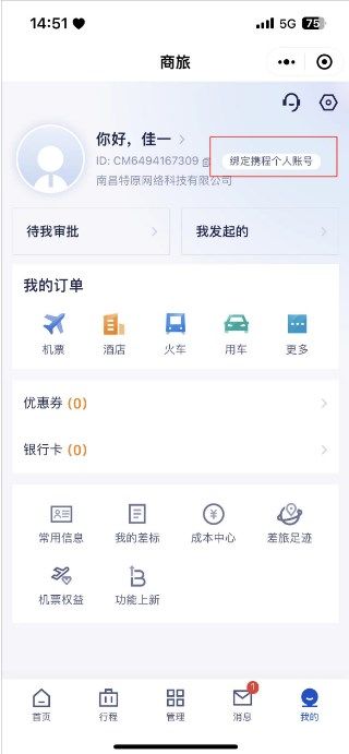 2、在“我的携程”页面中,找到并点击头像旁的“绑定携程账号”按钮。