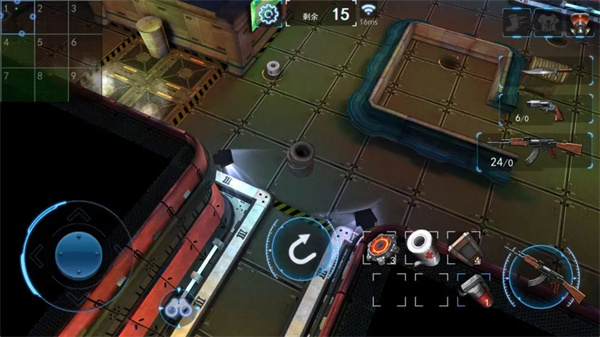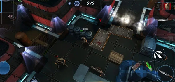 1、俯视角操作:采用俯视角设计,解决移动设备上FPS游戏的操作难题。