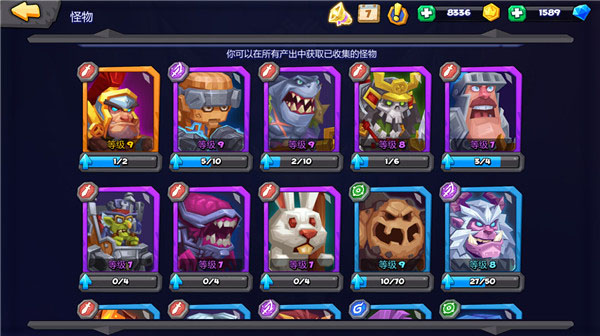 游戏中,金币在后期变得尤为重要,因为升级消耗巨大。两张高级绿卡+一张蓝卡+一张紫卡,是中期快速培养的最佳选择。如果条件允许,准备一套速攻和一套防反流阵容更佳,用于天梯上分。初期资源有限,建议先培养防反流,确保战斗中的优势。以下是一些具体的怪物推荐:
