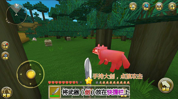 沙盒游戏环境,在这里,玩家不会受到任何刚性规则的限制,可以尽情发挥自己的创造力。游戏的场景设计在郁郁葱葱的丛林和幽深的森林之中,带玩家远离都市的喧嚣,走进这个充满生机的世界,开启一段全新的生活旅程。玩家可以选择过着简单的田园生活,建造自己的小屋,打造游泳池、种植植物,或是创建属于自己的农场,打造一个属于自己的小世界;同时,玩家也可以选择充满刺激的冒险生活,去探索和改变这个世界。在游戏内,玩家可以自由自在地享受游戏,抛开现实的纷扰,从零开始去收集各种材料和物品,发挥天马行空的想象力打造各种千奇百怪的全新建筑,创造一个理想中的世界。