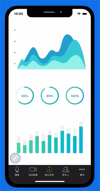 1、语音/视频功能:在进入会议前,可设置音频和摄像头的开启状态。默认情况下,语音保持关闭,需要发言时可点击开启。摄像头可在调试完成后开启。提供换虚拟背景和美颜功能,增加会议的互动性和趣味性。