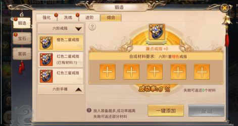 4)合成最多可放置5个装备作为材料,放置的越多,成功率越高