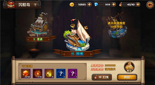 进入沉船岛玩法,只需点击屏幕右侧的“挑战-沉船岛”按钮。