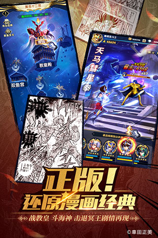 3、超燃绝技再现,重温经典剧情作为漫画正版授权改编的手游,完美还原了原著的剧情。玩家将从银河擂台赛开始,一步步重温暗黑圣斗士、黄金十二宫等经典故事。游戏中的角色和其独特的绝技经过精心打磨,以3D方式构建了青铜、白银、黄金圣斗士的形象,并以绚丽的特效重现了众多经典招式。