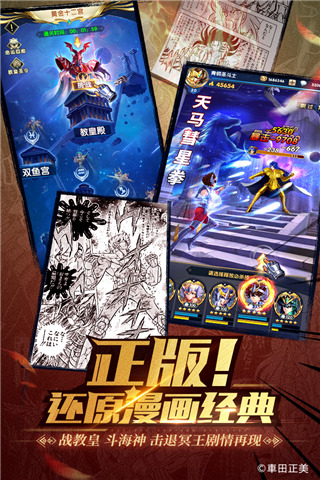 3、【经典重现,热血激战】忠实还原了原著漫画的精彩剧情。从银河擂台赛到暗黑圣斗士、黄金十二宫的经典故事,游戏让玩家一步步回味童年的热血。精心打磨的角色和绝技,以3D效果呈现,重现天马流星拳、庐山升龙霸等众所周知的招式。