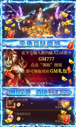 8、GM指令大礼包:每个玩家都可领取GM指令,每天输入GM666、GM777、GM888领取GM大礼。