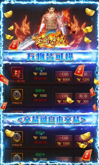 1、圣剑神域游戏官方版首创自由交易拍卖系统,快速培养角色,成为不败霸主;