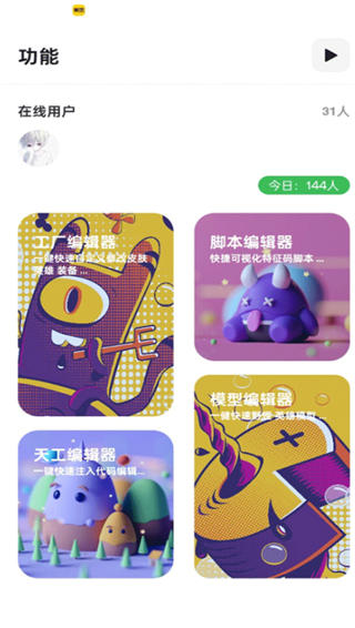 2、丰富的功能选择,包括工厂编辑器、脚本编辑器以及天工编辑器等。