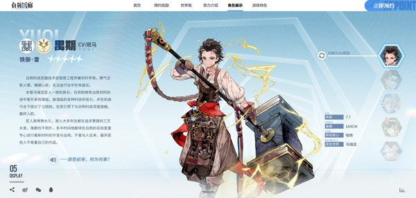 禺期,担任白荆科技武器技术部的首席工程师兼材料学家,性格直率又火爆。他原是乌瑞亚匠人族的族长,偶然来到海临后被当地科技深深吸引,最终加入白荆科技。专注于新材料的开发,他不喜与人交流,最痛恨他人对自己作品的不尊重。