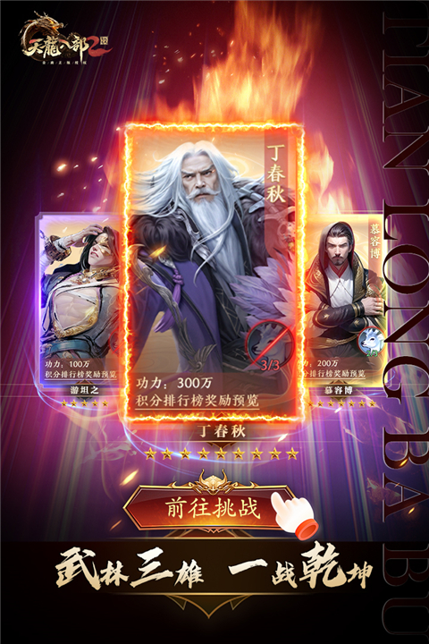 一战乾坤全新首领争夺战—武林三雄开启,江湖波谲云诡之际,三雄现身江湖,还请各位大侠结伴阻敌!