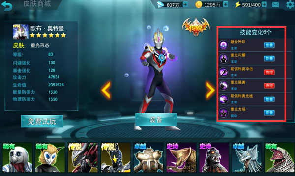在游戏中,玩家将化身为广受欢迎的奥特战士,如迪迦、赛罗、艾克斯、贝利亚等。扮演这些英雄,玩家将继承他们的强大力量和战斗技巧,并承担起保卫地球、保护人类、与黑暗怪兽抗衡的使命。每个奥特战士都能变换不同的形态和装备多样的皮肤,展现出独特的光能力量。
