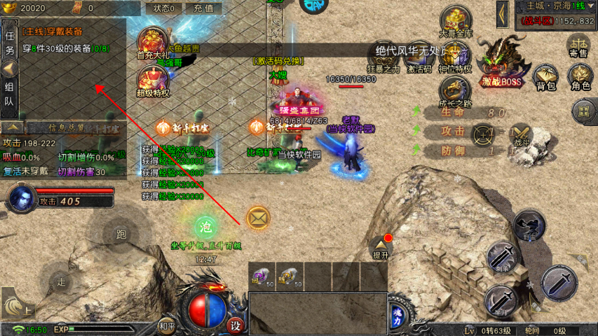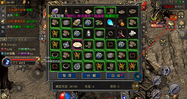 6、回收装备:背包满时,点击背包内的装备进行回收,可获得大量元宝和经验。