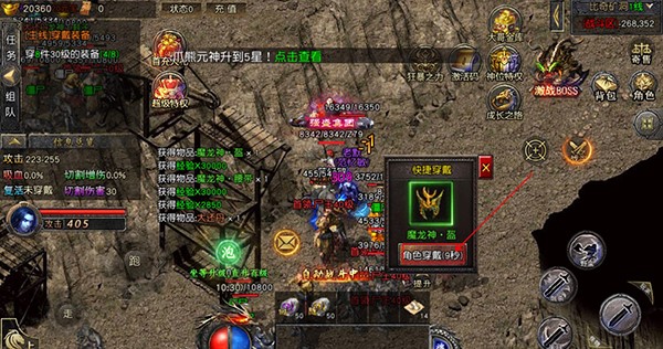 5、快速装备:击败怪物后,点击“角色穿戴”自动装备,提升战力。