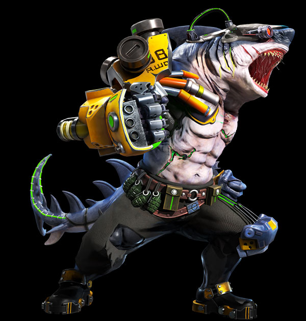 嗜血狂鲨:位于潮汐之岛的海洋霸主,鲨鱼与畸形微生物融合后,拥有了矫健的四肢和高级智慧,成为了雇佣公司的合作伙伴。
