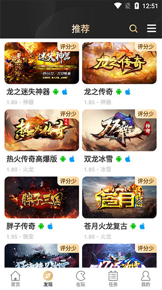 3、探索页面贴心为玩家准备了游戏推荐列表,方便大家根据游戏评分选择喜欢的游戏来享受无限乐趣。