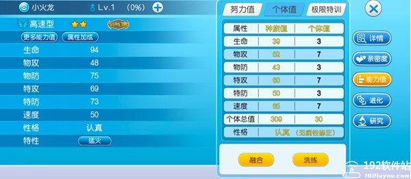3、查看个体值:点击右侧的个体值选项,以查看当前精灵的个体值分布。