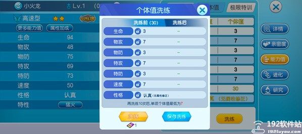 5、洗练:拥有足够的神奇胶囊后,点击右下方的洗练按钮,以开始提升个体值。