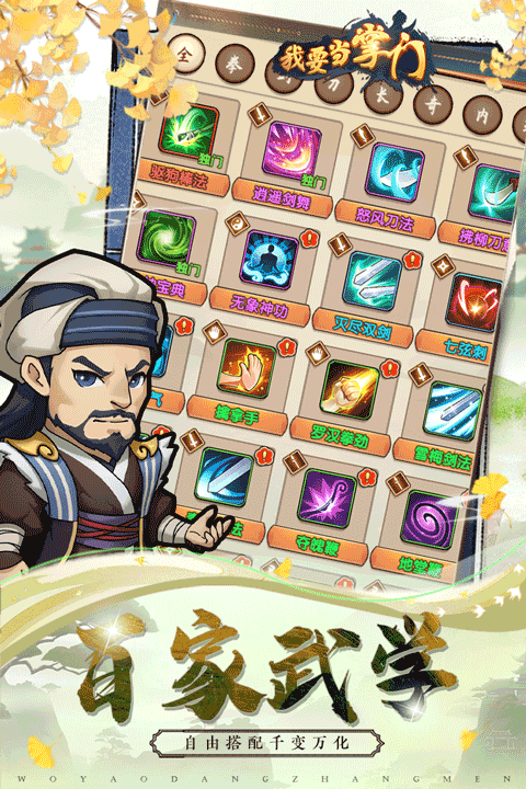 百种武学功法,多样战斗技巧,让弟子学习和精进,提高他们的战斗力。拳掌刀剑,内外功法,让你的门派在武林中威名远播。