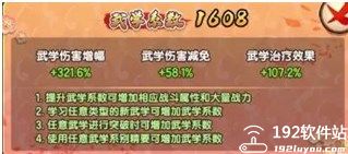 增加武学系数方式:学习新武学,突破外功武学(注意突破内功和轻功武学只增加人数属性,不增加武学系数),以及学习精要等。其中最能拉开差距的就是突破外功武学,这就需要消耗很多外功修炼,可以选4个等级高(等级影响修炼经验储存值)、日常修炼效率高的弟子进行修炼,然后进行散功,得到的修炼符给主C用来武学突破。