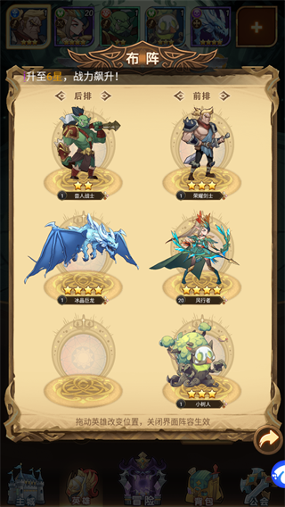 5、冒险关卡是快速提升英雄实力和玩家经验的捷径。