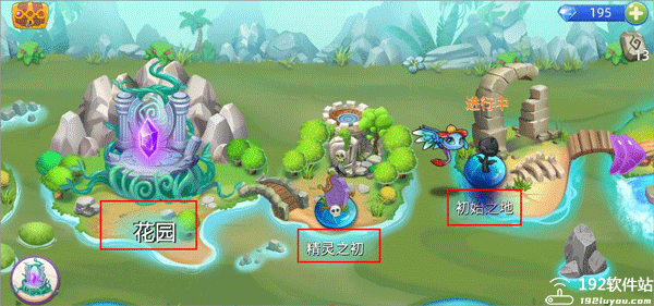 2、打开地图后,可以看到有花园、精灵之初、初始之地等场景;