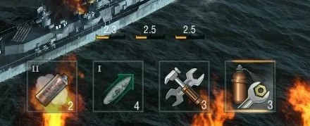 右方的武器标识代表的是战舰装备的主副炮,不过部分战舰没有副炮,取而代之的是鱼雷发射管,舰长可以灵活选择火炮或鱼雷进行攻击;而旁边的炮弹标识则是炮弹类型,能自由切换为HE高爆弹或者AP穿甲弹。