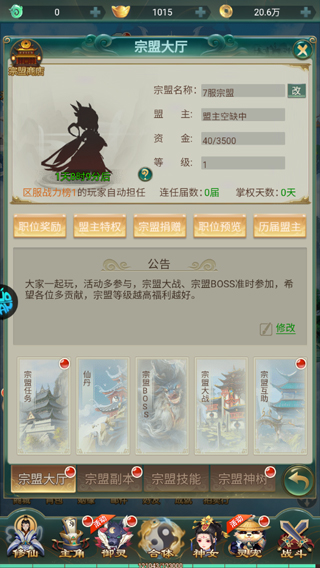 2、加入宗门,参与宗门副本挑战以获得属性提升的丹药和宗门技能学习。