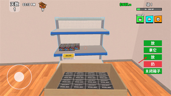 4、将货物放到货架上,可以看到右侧有放的按键,点击就可以;