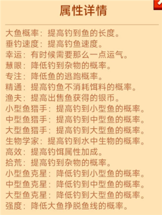 渔具包括:鱼饵、鱼竿、鱼钩、鱼线、鱼鳔、鱼缸,均可免费获得。