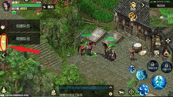 点击左侧旗帜图标,玩家可创建或加入队伍,共同冒险。