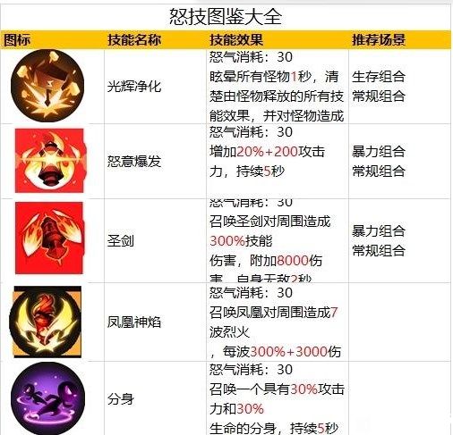 下面小编为大家整理了所有怒技的效果