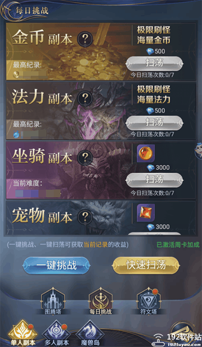 此外,每日挑战、单人BOSS的扫荡功能可以一次性清除多个挑战,从而迅速获得大量的奖励;