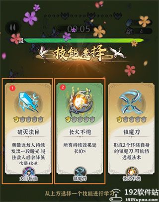 通过拾取经验点可以提升经验等级,每次提升都可以选择新的技能