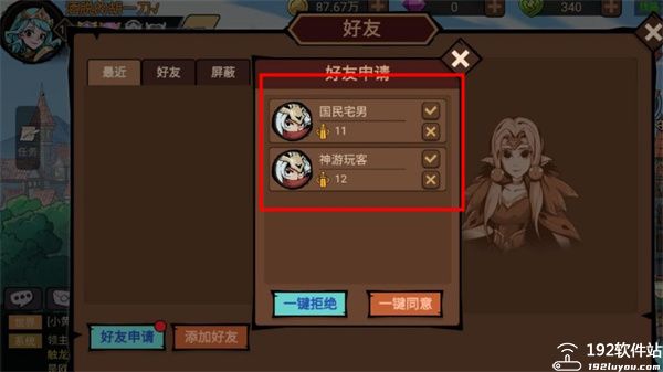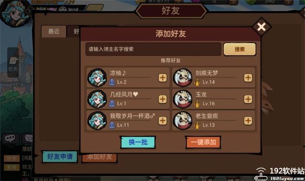 4、接下来进入到添加界面,玩家可以直接领主名字搜索添加好友,也可以直接添加在线玩家