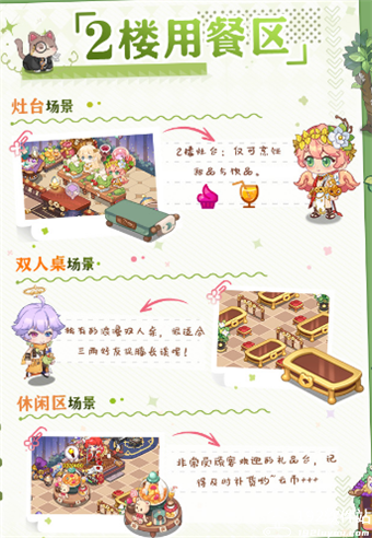 游戏中,每一个角色都有自己擅长的食物,比如白雪公主,童话传说中它和红苹果有莫大关系,因此设定它制作甜点很厉害,还有嫦娥,是中国传说中的人物,擅长制作中餐,后续餐厅升级还能让角色带来更好的服务,优美的表演,可以提升餐厅收益,很不错哦。
