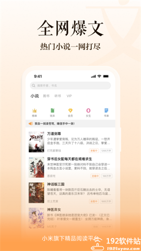 共分为男频、女频两大类型,其中细分出多个风格种类,如历史、言情、科幻、都市、玄幻、古代、军事、游戏等题材,以及新书、榜单、完结、精选四大版块,这样用户可一目了然找到喜欢的风格,并会根据最近阅读来推荐类似的小说,完全不必担心书荒。软件同时贴心带来免费专区,该频道内每本小说都能够免费阅读,不需要额外收费,而且每隔一段时间就会加入新的书籍可供大家浏览。