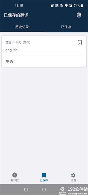 3、接下来可以在“已保存”的功能栏里面找到之前翻译的英文内容。