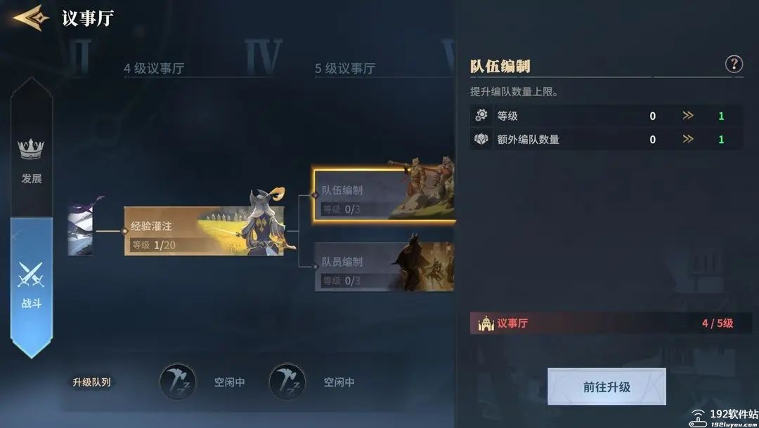 3、第一天尽快提升主城等级,解锁队伍编制科技,可以解锁第二队、第三队!这样就能有多队伍可以玩。