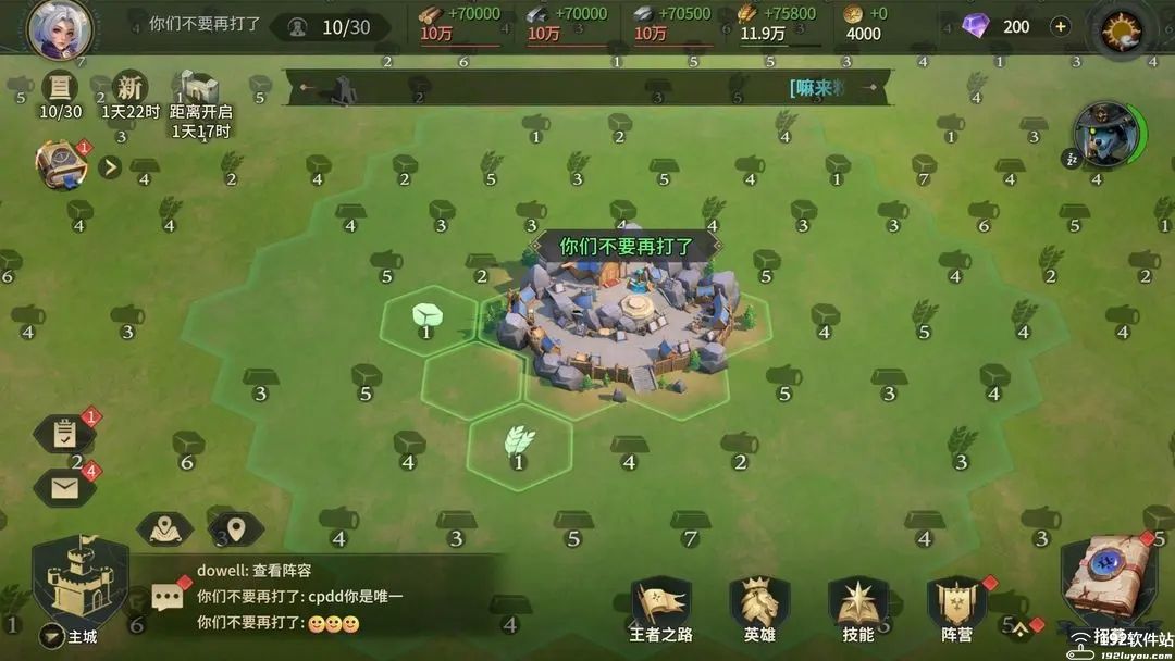 9、每位城主可占领领土数量有限,提升声望值可增加领土土地数量上限。合理利用队伍体力,不断把低级地换成高级地,才能最大化自己的资源收入。