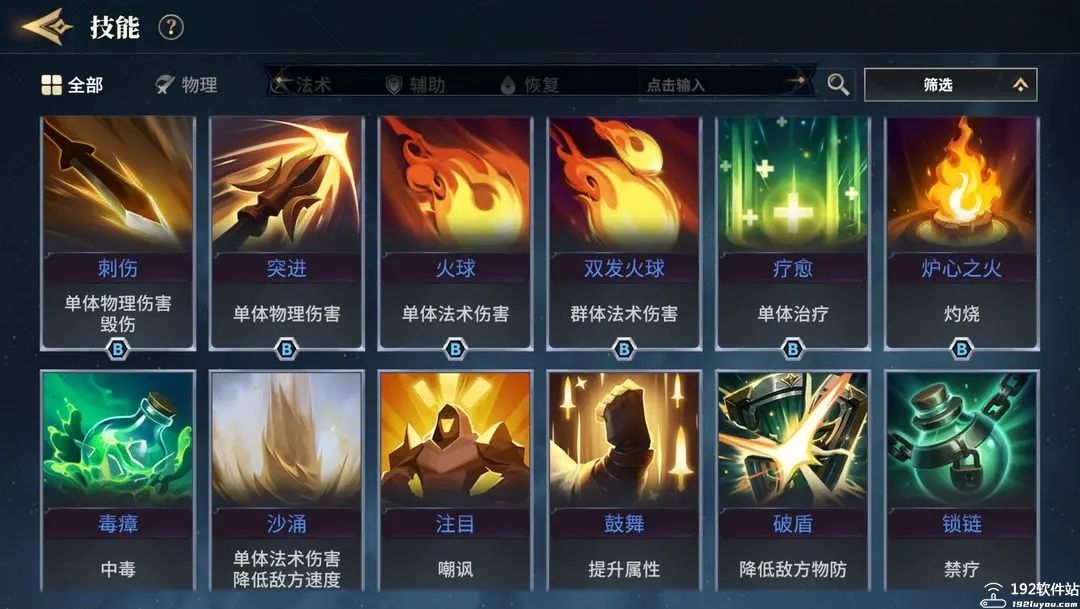 游戏内每个英雄自带普通攻击、核心技能两个技能。还可额外赋予两个技能。分别在10级和20级解锁