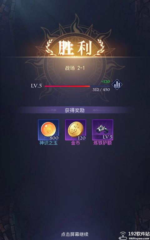 将boss消灭之后就可以获得胜利啦,点击就可以领取奖励并进入下一关。