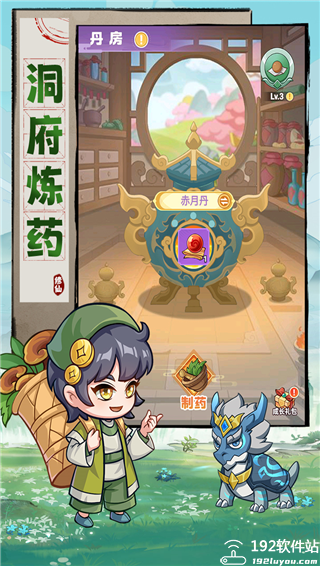 3、洞府炼药:当你挑战玩各种战斗环节之后,便可以去炼制仙药,从寻找到采集再到熬制全都可以让玩家去体验如何完成,将它服用后还可以增加自己的灵田数量。