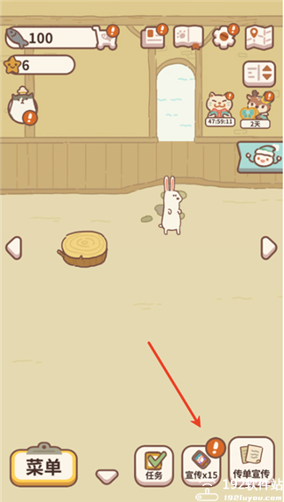 玩法介绍:渔夫兔丁需要用鱼饵从鱼塘钓取鱼,从而放在摊位上进行售卖,就可以招来摊主并得到盘子。