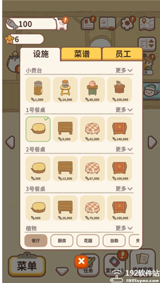 4、用获得的小鱼干和星星来购买餐厅设施,餐厅设施越多来的客人就会越多。