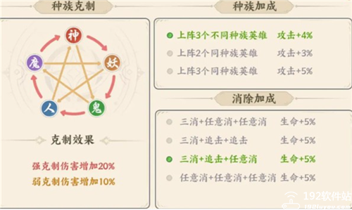 4、游戏的战斗最多只能上阵三个英雄,而战斗中三个英雄的方块是随机出现的,为了避免三消型英雄互相“抢块”,在搭配阵容时,要尽量避免出现两个三消型英雄同时上阵;或者在布阵时,保持图中的任意组合即可,还能获得额外加成。在阵容调整时还会有一个队长的设定。英雄被设置为队长时,可额外获得50%方块生成概率。