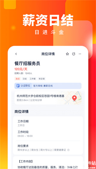 平台内大部分的兼职信息都是安全可靠的,但是在找工作的时候大家一定要多留个心眼,如果要你什么介绍费,或者提前交钱的工作统统不要理会,保护自身安全。访问网络 访问网络连接,可能产生GPRS流量 ------------------------------------- 获取网络状态 获取网络信息状态,如当前的网络连接是否有效 ------------------------------------- 获取WiFi状态 获取当前WiFi接入的状态以及WLAN热点的信息 ------------------------------------- 写入外部存储 允许程序写入外部存储,如SD卡上写文件 ------------------------------------- 访问外部存储 访问外部存储的权限 ------------------------------------- 读取系统日志 读取系统底层日志 ------------------------------------- 唤醒锁定 允许程序在手机屏幕关闭后后台进程仍然运行 -------------------------------------
