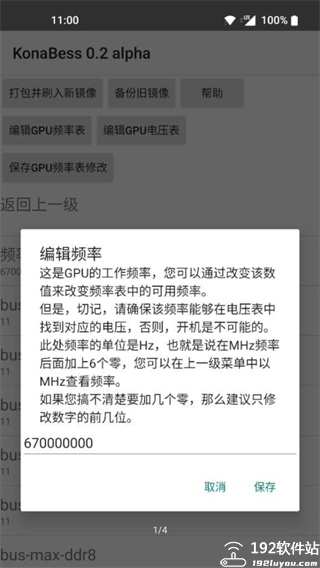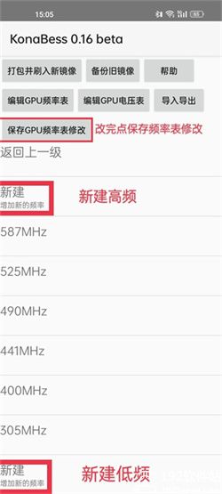 (4)备份完镜像后可以开始进行降压和超频工作,点击界面的编辑GPU频率表可以设定你想要的频率。可以对现有的频率进行删减,也可以点击新建,新增频率。改完点击保存,千万别忘了。