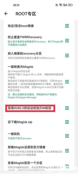 (6)此时可以在软件主界面点击打包并刷入新镜像按钮来应用你所做的修改。在刷入之前,请务必确认电压表频率档位能涵盖住频率表档位。部分品牌手机有开机校验,刷入镜像后会卡在校验界面,如果你不知道自己手机会不会开机校验,那建议你安装搞机助手•R,在Root专区中选择禁用AVB2、0的启动校验/MD校验。禁用后再重启手机。