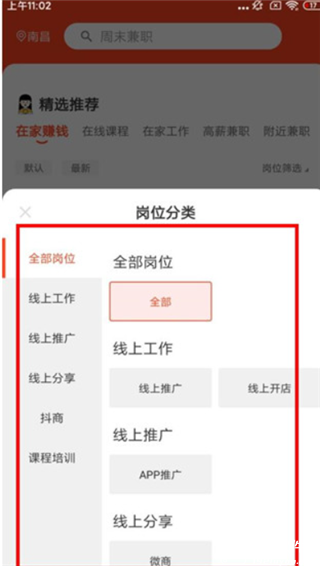 3、大家可以按照分类进行筛选,有很多线上工作可以应聘。